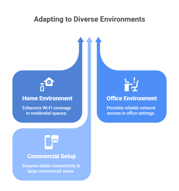 In commercial environments, reliable Wi-Fi is critical for seamless customer service and operations. The Hi-Focus extender ensures smooth performance for: